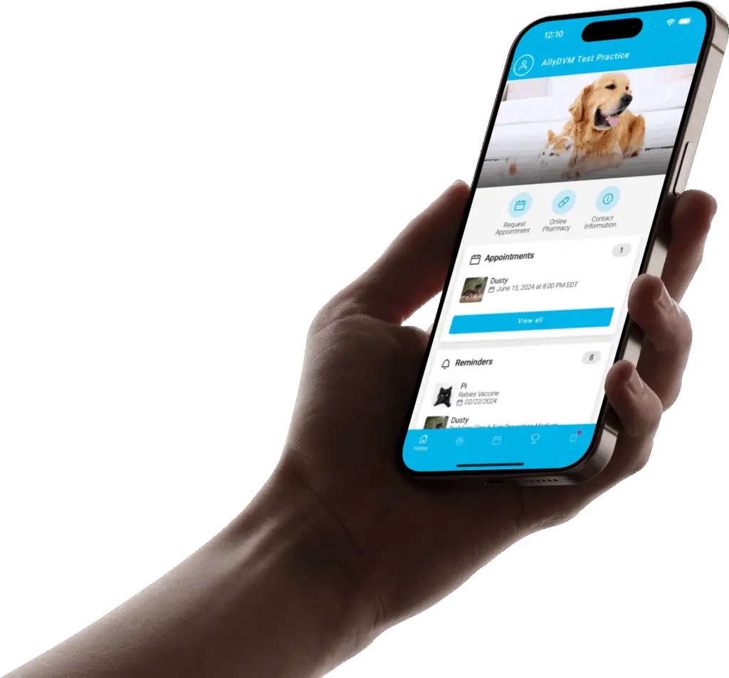 The PetPage app features easy-to-use, self-serve tools keeping you connected to your veterinarian and your pet’s health 24/7:
